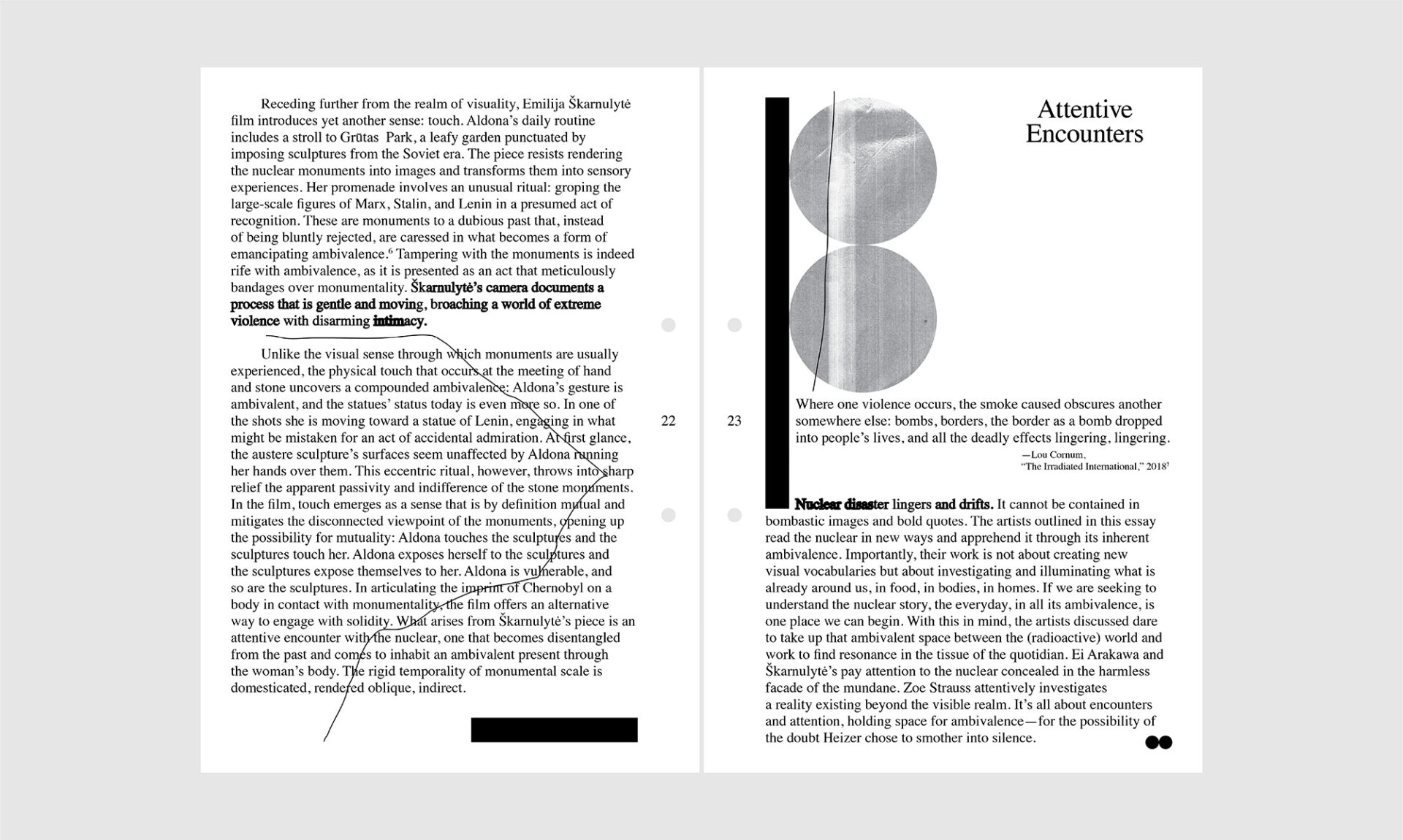 Kyveli Mavrokordopoulou is an art historian and curator working on nuclear technologies and the broader relationship between art and science. She is finishing a PhD at the École des hautes études en sciences sociales (EHESS, Paris), with an Onassis scholarship, on the subterranean imaginary in contemporary art, especially concerning nuclear spaces. She has programmed and curated projects for institutions including Sonic Acts, Framer Framed, and the 7th Moscow Biennial. Recently she acted as guest editor of RESOLUTION Magazine Hot Pictures (2021) and Kunstlicht Nuclear Aesthetics (Vrije Universiteit, 2019). She has taught courses at the Royal Academy of Art in The Hague, Sandberg Instituut in Amsterdam, Esä in Dunkirk, and Carleton University in Ottawa. Mavrokordopoulou is an ARTWORKS curatorial fellow of the SNF Artist Fellowship Program in 2020–21.