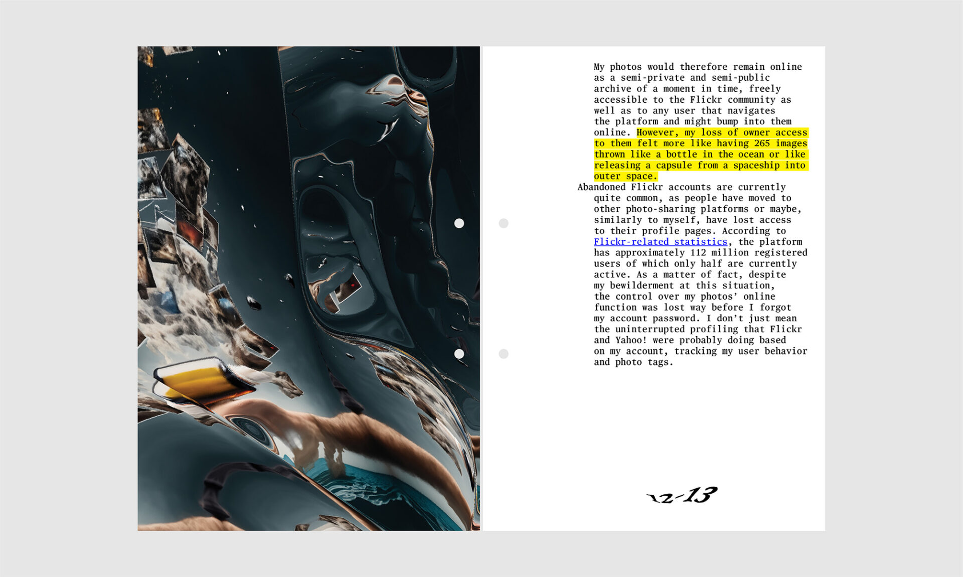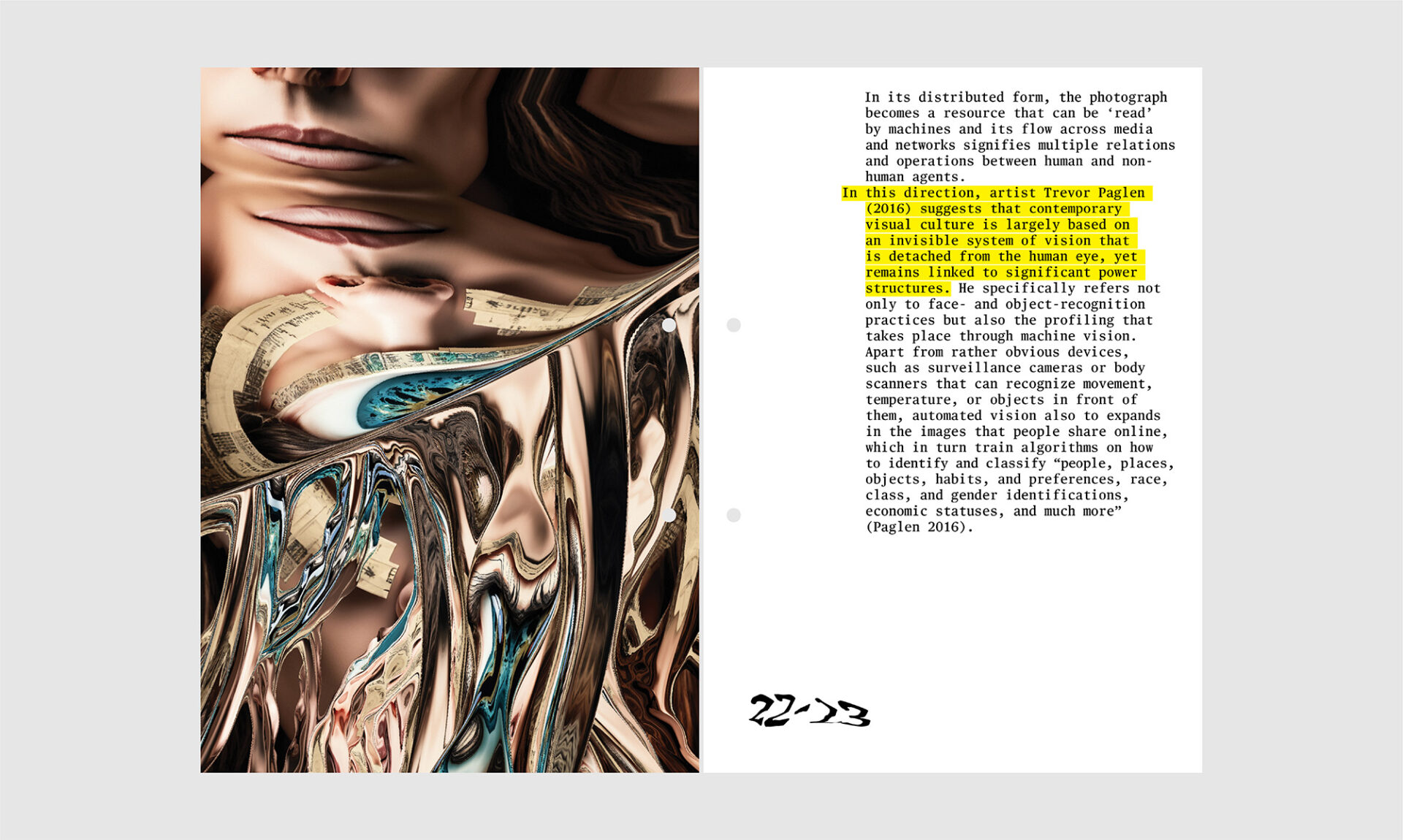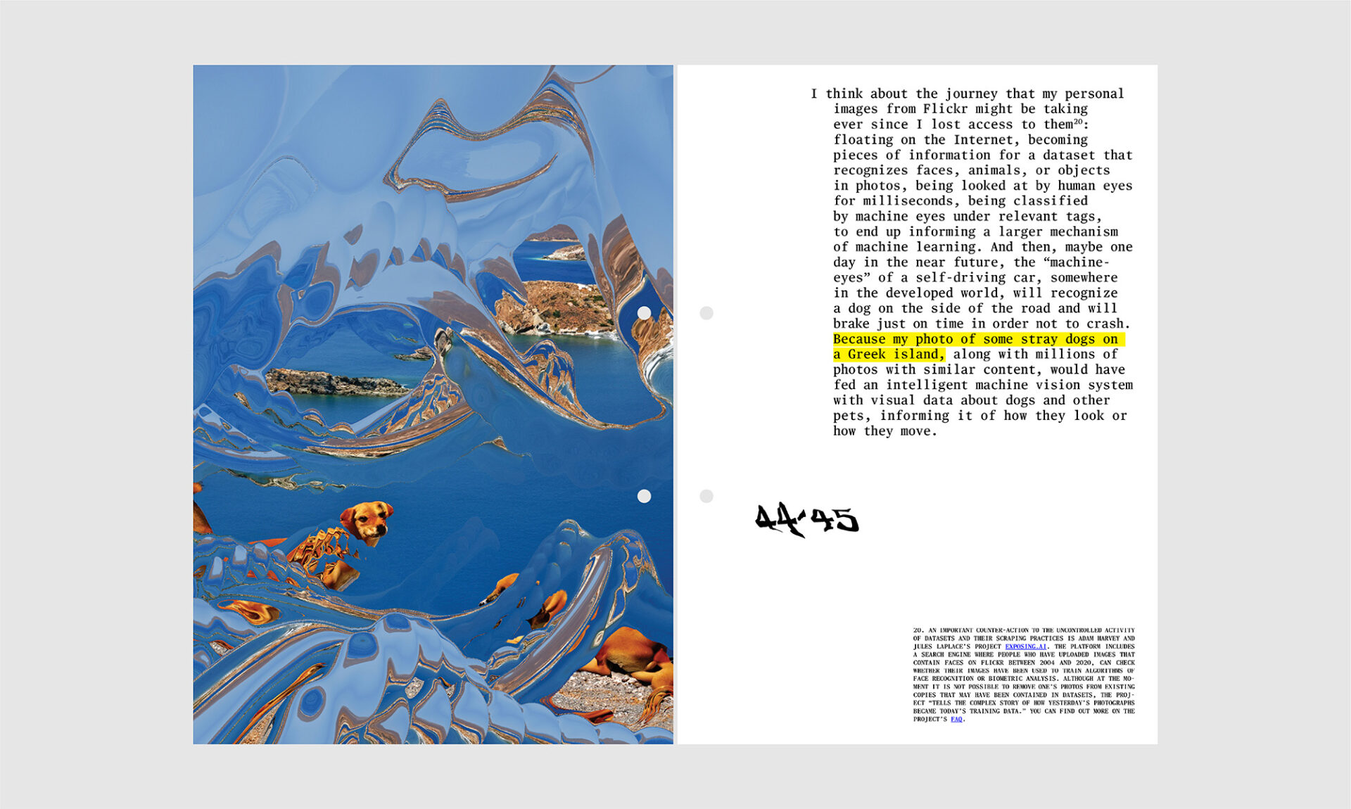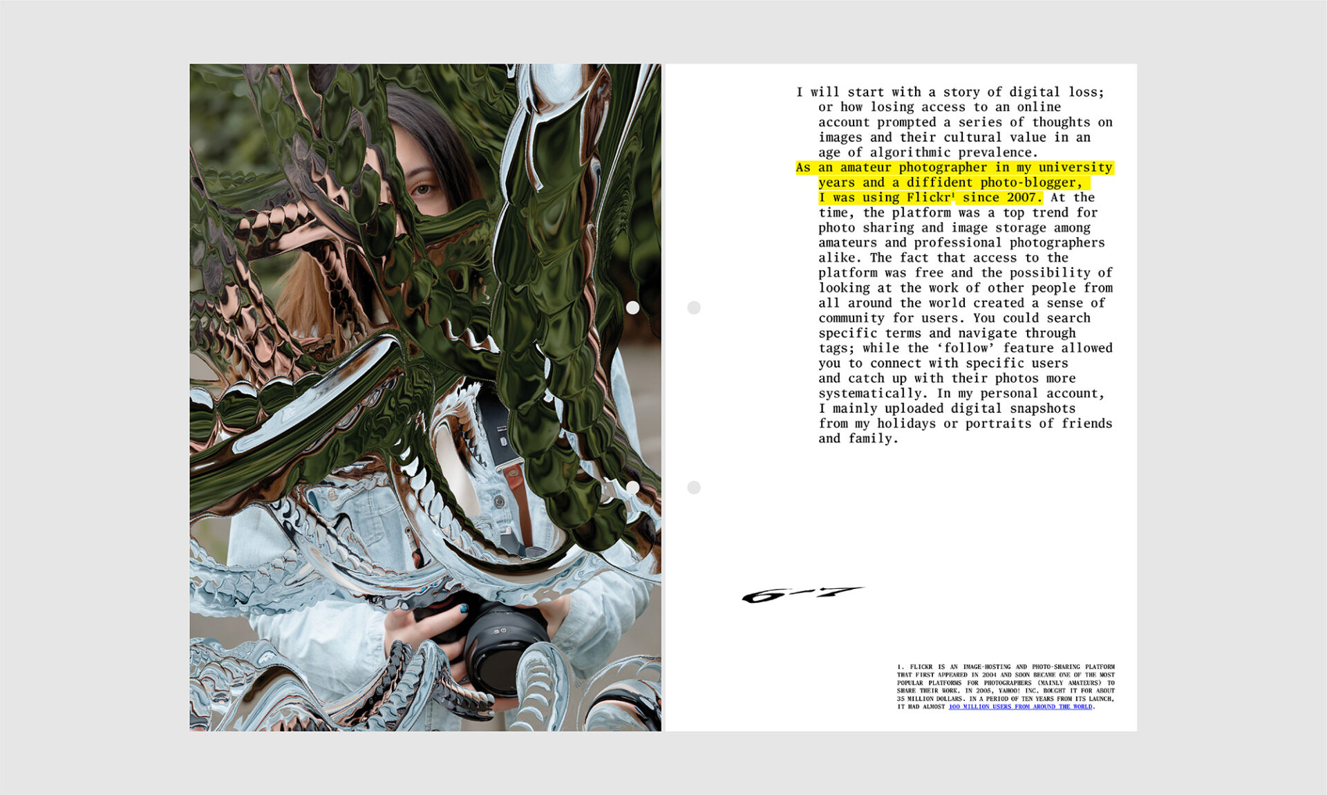 Her PhD research was funded by the Arts and Humanities Research Council (AHRC), the Greek State Schοlarships Foundation (IKY), as well as the A.G. Leventis Foundation. She is a regular collaborator of The Photographers’ Gallery in London where she has been the editor of the unthinking.photography platform from 2016, while between 2016 and 2019 she worked at the museum as a digital producer and curatorial assistant. She has been awarded the Stavros Niarchos Foundation Artist Fellowship by ARTWORKS (2020), and has participated in the Onassis AiR residency as a Writer-in-Residence (2021) and as a Research Fellow (2023). She is a research associate at the Centre of New Media and Feminist Public Practices and a visiting lecturer at the Department of Culture, Creative Media and Industries at the University of Thessaly.